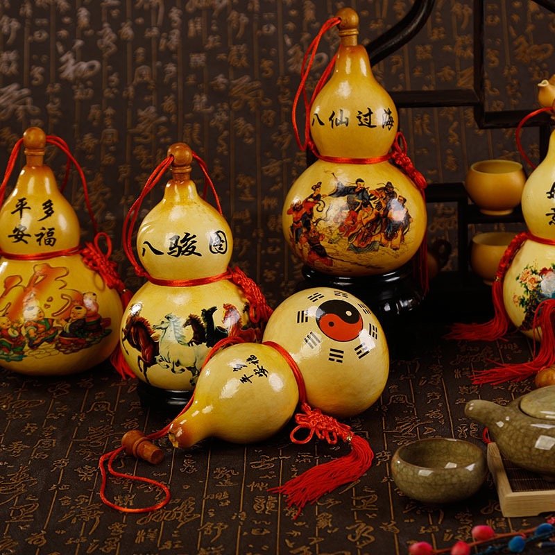 A beautifully crafted gourd hanging featuring five lucky charms and a classic Chinese knot. Symbolizing five blessings — fortune, wealth, health, joy, and peace — this piece brings positive energy to any space.