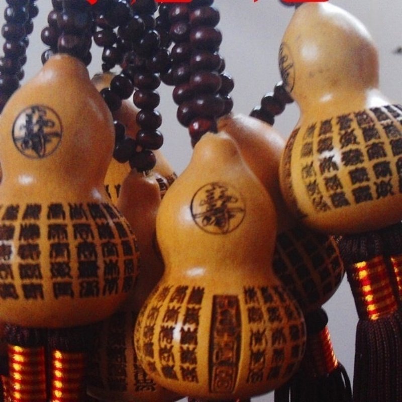 Carry good fortune in your pocket.This natural gourd charm features engraved “Hundred Blessings” symbols — a traditional token of peace, longevity, and prosperity. Handmade, meaningful, and ready to gift.